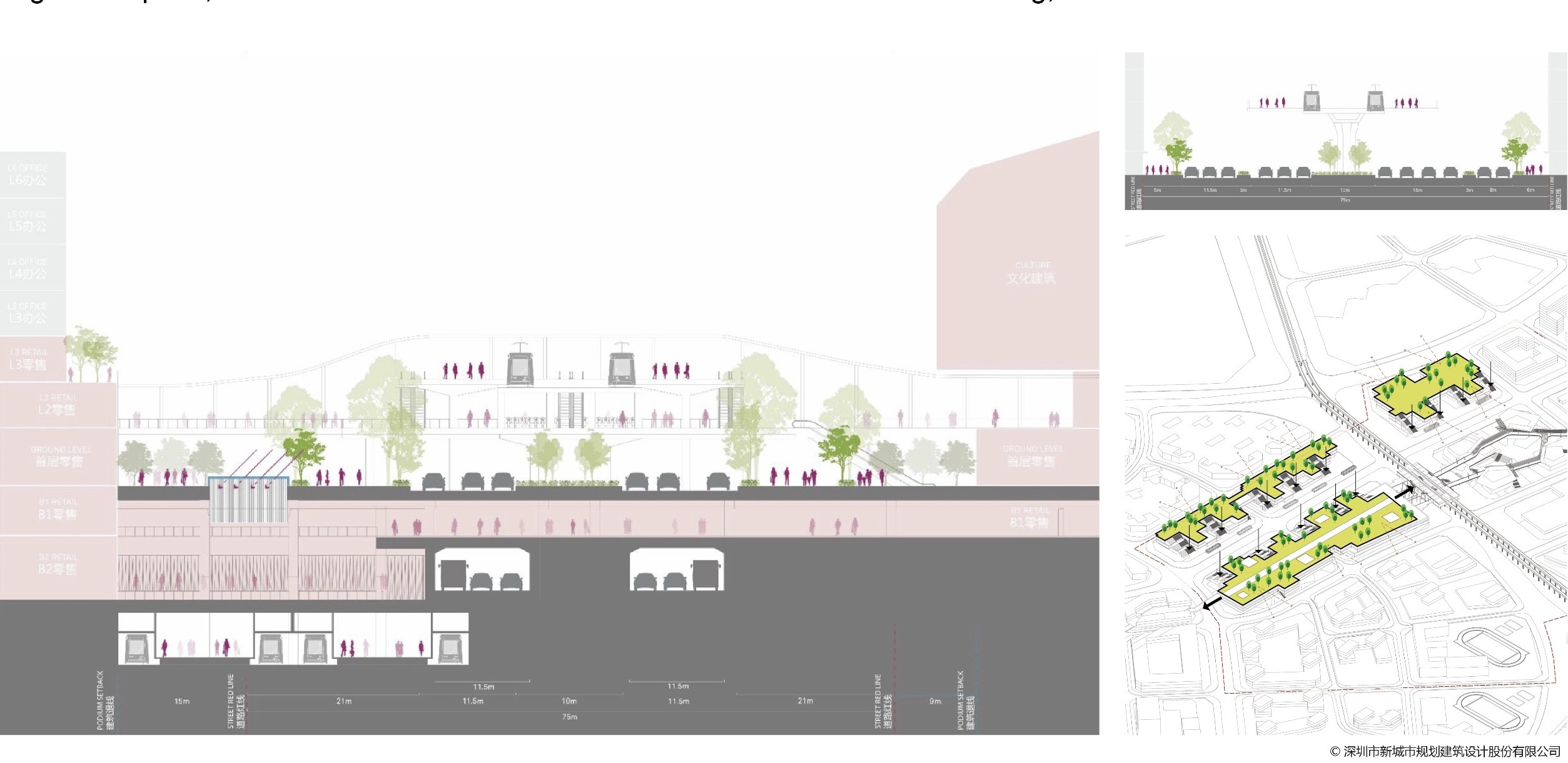 2)城市交通以地下四层轨道交通为主,纵横交错,与地面建筑垂直联系;