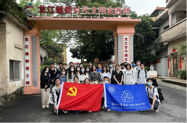 支部党员在龙江镇新时代文明实践所门前合影留念