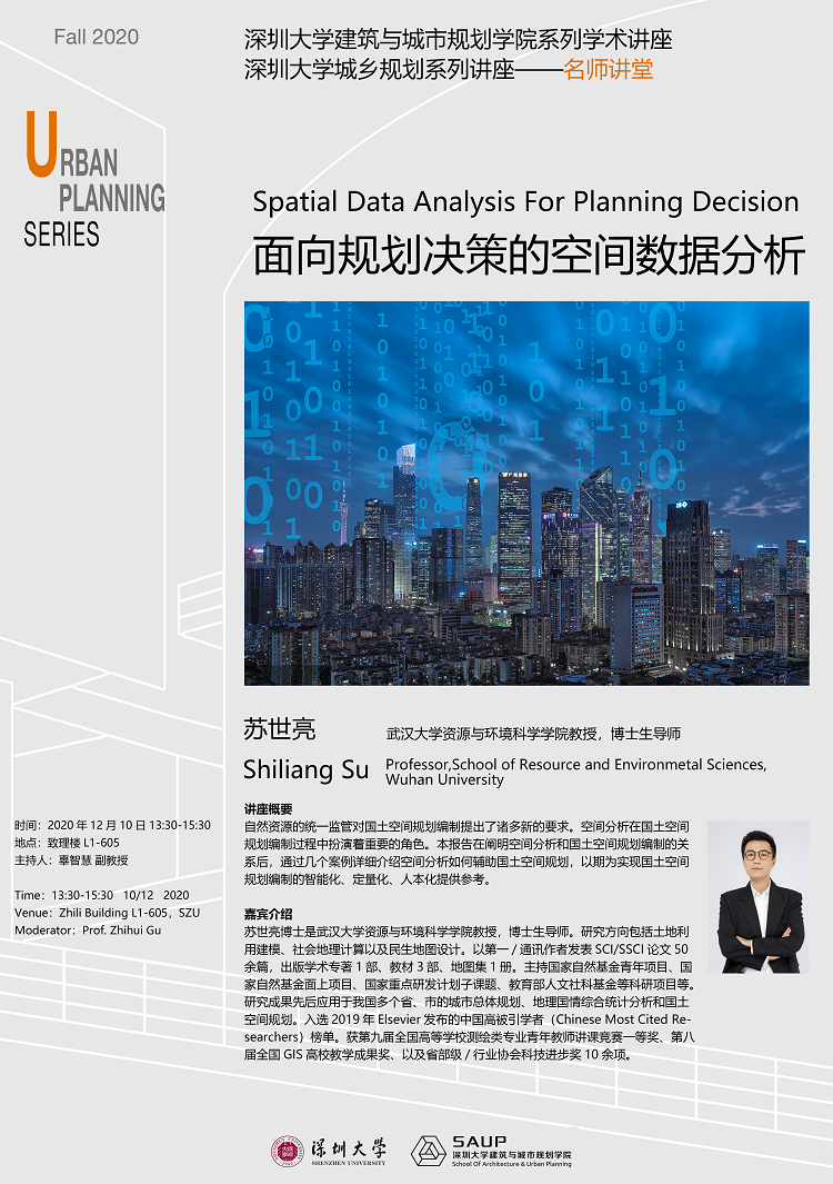 苏世亮,博士,武汉大学资源与环境科学学院教授,博士生导师。研究方向包括土地利用建模、社会地理计算以及民生地图设计。以第一/通讯作者发表SCI/SSCI论文50余篇,出版学术专著1部、教材3部、地图集1册。主持国家自然基金青年项目、国家自然基金面上项目、国家重点研发计划子课题、教育部人文社科基金等科研项目等。研究成果先后应用于我国多个省、市的城市总体规划、地理国情综合统计分析和国土空间规划。入选2019年Elsevier发布的中国高被引学者(Chinese Most Cited Researchers)榜单。获第九届全国高等学校测绘类专业青年教师讲课竞赛一等奖、第八届全国GIS高校教学成果奖、以及省部级/行业协会科技进步奖10余项。