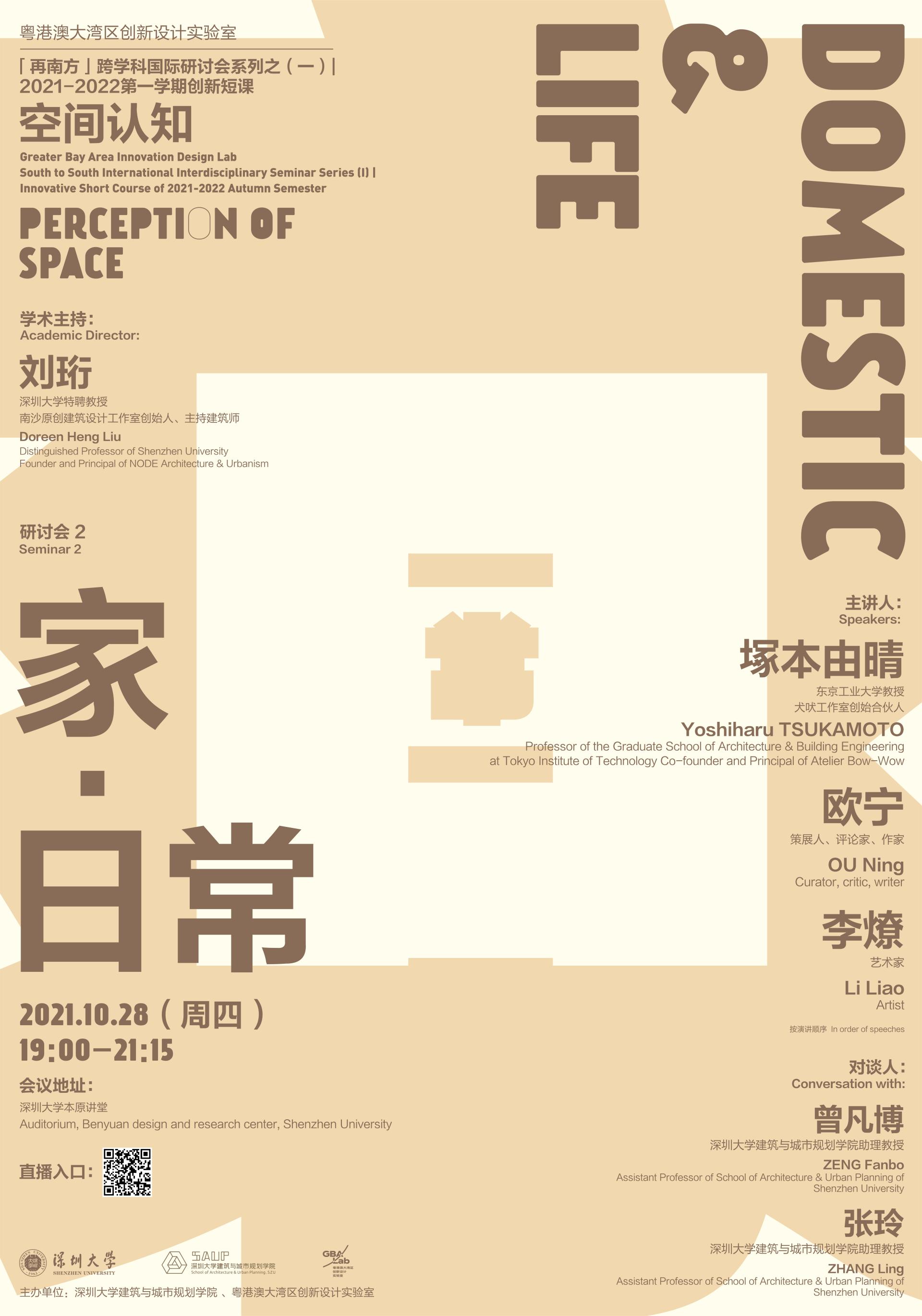 「再南方」系列研讨会2021年秋季学期的主题为“空间认知”,共设六讲,包括五讲研讨会和一讲汇报总结。五讲研讨会基于“不确定性”和“改变”,分别围绕五个主题:人·尺度、家·日常、设计(不)创新、气候变化和新新空间,从研究和实践两个维度展开。研讨会由刘珩教授策划并主持,邀请国际国内的建筑师和学者,与艺术家、社会学家、人类学家和地理学家展开跨界跨学科对话,将艺术、美育、人文纳入建筑学的探讨,探讨建筑学未来面临的问题。