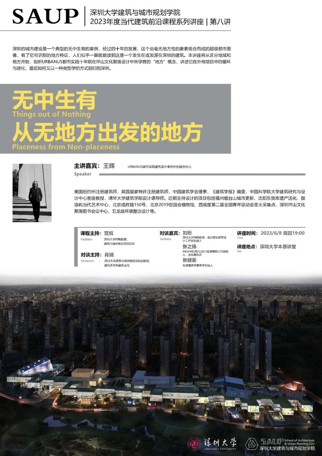 深圳的城市建设是一个典型的无中生有的案例,经过四十年的发展,这个由毫无地方性的象素组合而成的超级都市图像,有了它可识别的地方特证,人们似乎一眼就能读到这是一个发生在或发源在深圳的建筑。本讲座将从区分地域和地方开始,剖析URBANUS 都市实践十年前在坪山文化聚落设计中所孕育的“地方”概念,讲述它在外地项目中的循环与进化,最后如何又以一种类型学的方式回归到深圳。