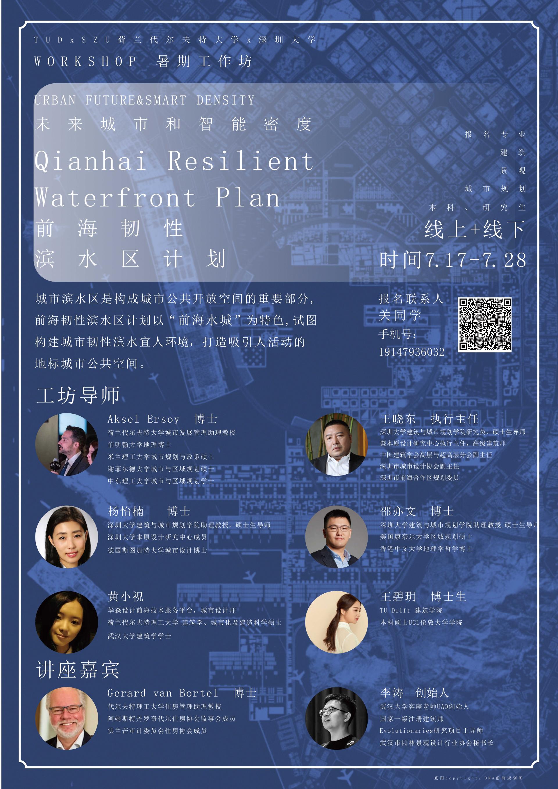 本工作坊由荷兰代尔夫特大学、深圳大学联合举办。城市滨水区是构成城市公共开放空间的重要部分,前海韧性滨水区计划以“前海水域”为特色,本工作坊试图构建城市韧性滨水宜人环境,打造吸引人活动的地标城市公共空间。