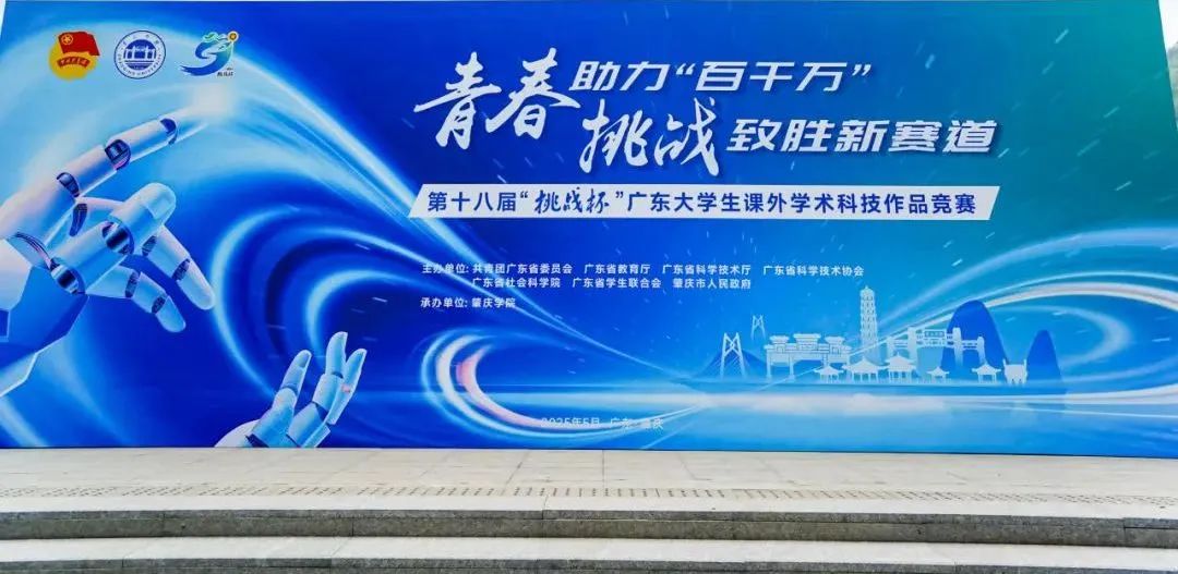From May 17 to 19,2025, the final round of the 18th "Challenge Cup" Guangdong College Students 'Extracurricular Academic and Scientific Works Competition was successfully held. The event was jointly organized by the Communist Youth League of Guangdong Province, Guangdong Provincial Department of Education, Guangdong Provincial Department of Science and Technology, Guangdong Provincial Association for Science and Technology, Guangdong Academy of Social Sciences, Guangdong Provincial Federation of Students, and Zhaoqing Municipal People's Government, with Zhaoqing University as the host institution.