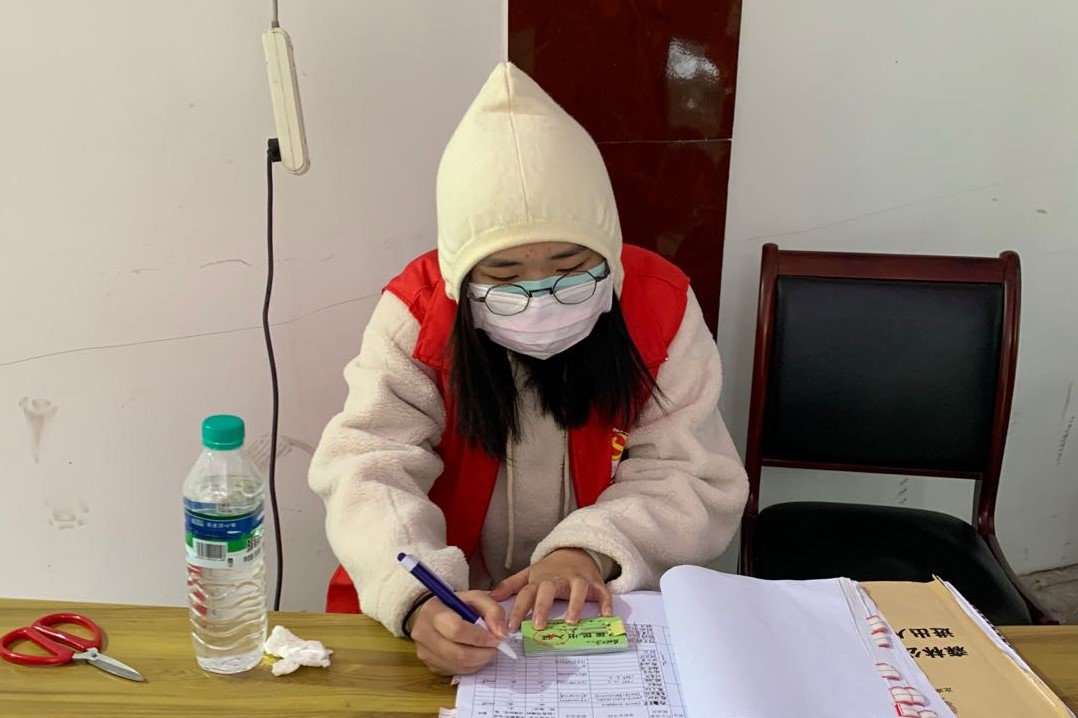 服务内容:在社区参加物品分发志愿活动,记录社区居民户籍情况以及春节前后人口流动情况