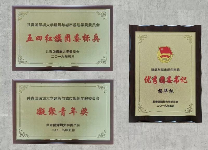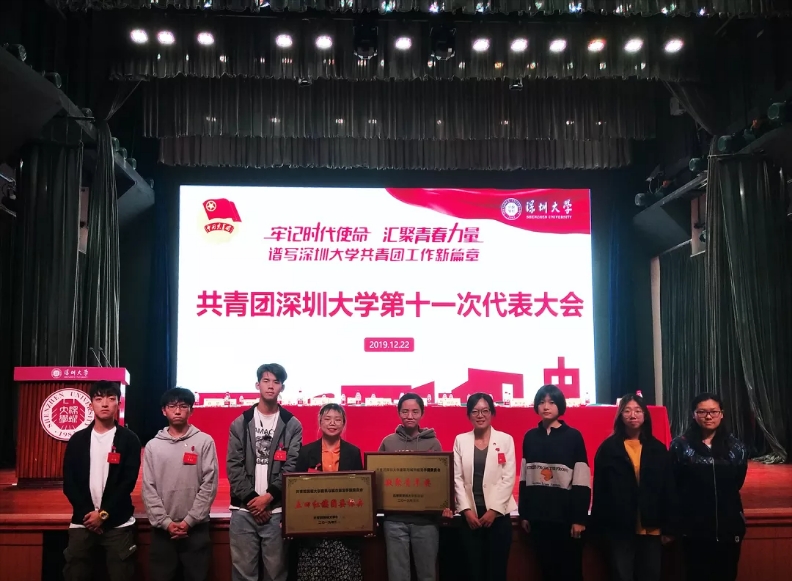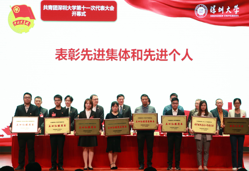 大会开幕式最后,与会领导为过去一年在深大共青团中涌现出的一批堪为表率的基层组织、团员青年和关心支持团学工作的“青年之友”颁奖。我院团委荣获“五四红旗团委标兵”荣誉称号、“凝聚青年奖”荣誉称号以及团委书记杨华林老师荣获“优秀团委书记”荣誉称号三大奖项。
