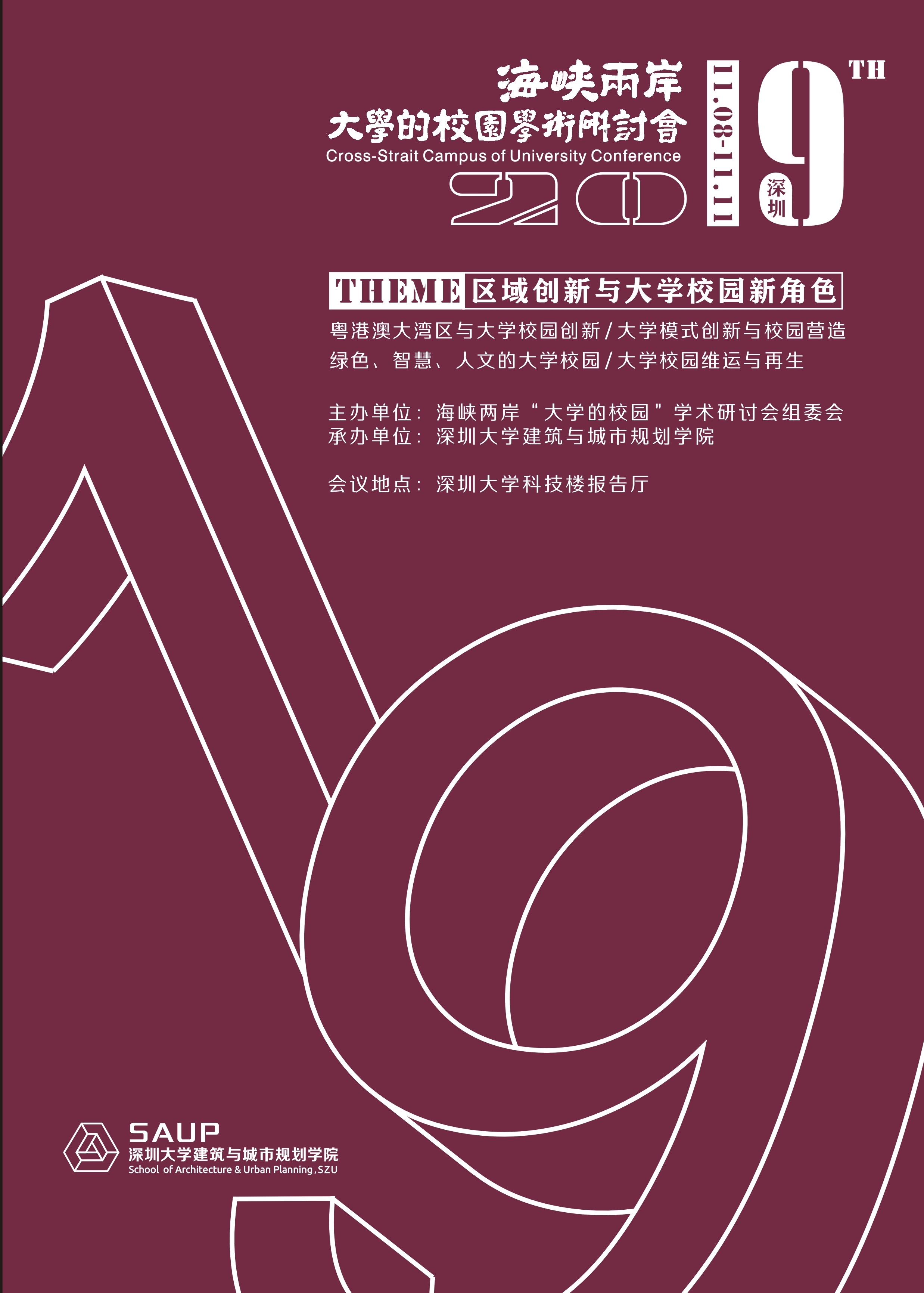 2019年第十九届海峡两岸“大学的校园”学术研讨会将由深圳大学建筑与城市规划学院承办,会期定于2019.11.9(周六)~10(周日)。本次研讨会的主题是“区域创新与大学校园新角色”,诚邀两岸专家学者从校园创新、校园营造、绿色智慧校园、以及校园维运与再生等方面进行深入交流,探讨区域创新背景下的大学发展新模式,为校园规划设计理念与空间表征的前景,畅所欲言,出谋划策。