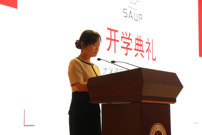 范院长对学院英文缩写字母“SAUP”做了另一重释义,也是他与同学们共勉的第二点建议:“P”代表Plan,计划。希望同学们能培养自主选择和执行计划的能力。“U”代表United,团结、协作、联合。鼓励同学融入集体生活,提高团队作战的能力。“A”代表Active,积极主动的。深圳不仅是个开放的城市,还是个积极的城市,这个城市是提倡尝试和挑战的、是实干的。最后是“S”,Sport,运动。在深大建规学习需要同学们有个健康的体魄,学院的许多老师都是体育健将,希望同学们以他们为榜样。