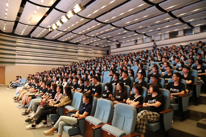 9月19日上午10:00,320多名2020级本科生和研究生新生身穿统一的院服齐聚汇星楼一号报告厅,聆听题为《立足特区 成就自我》的专题思政课,本次课程由院党委钟波涛书记主讲,党委副书记冯俊艳同志主持。