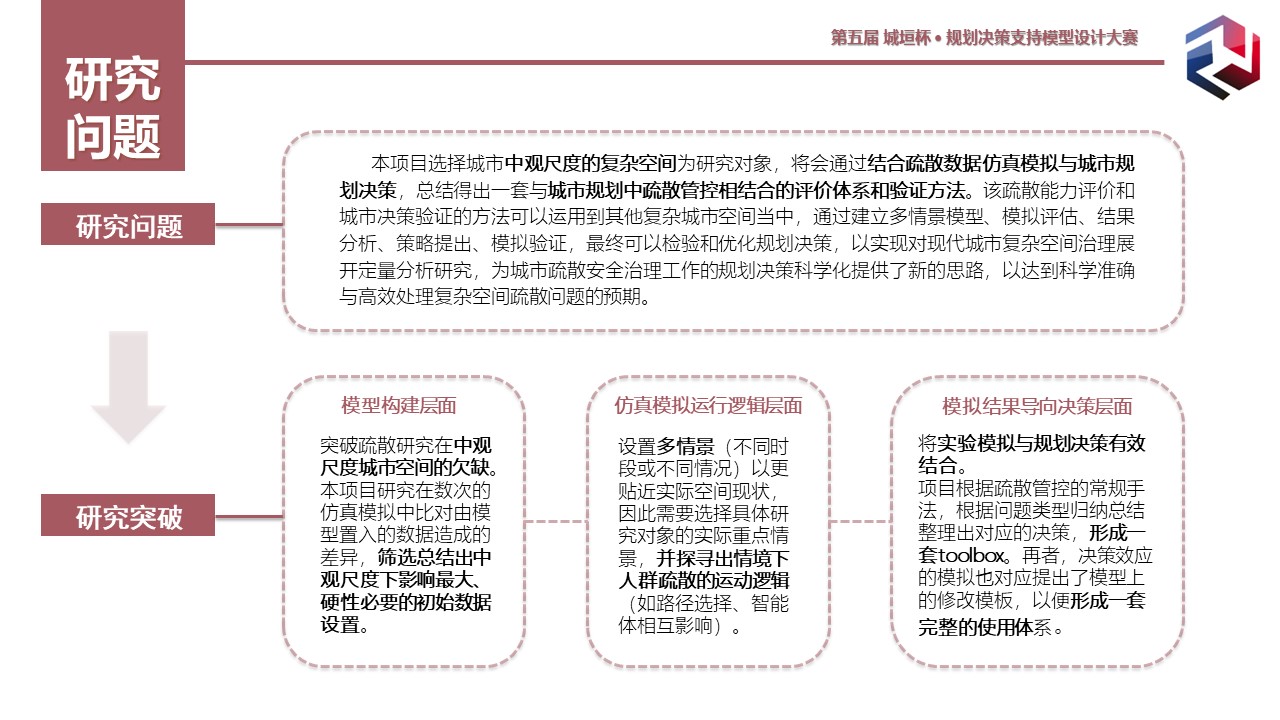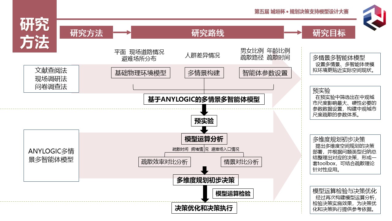 研究内容创新:现有研究多以具体单应急事件为研究导向,⽽⾮综合灾种视野下⼈群⾏为导向;提出设置多情景以更贴近实际空间现状,并探寻出情境下⼈群疏散的运动逻辑;