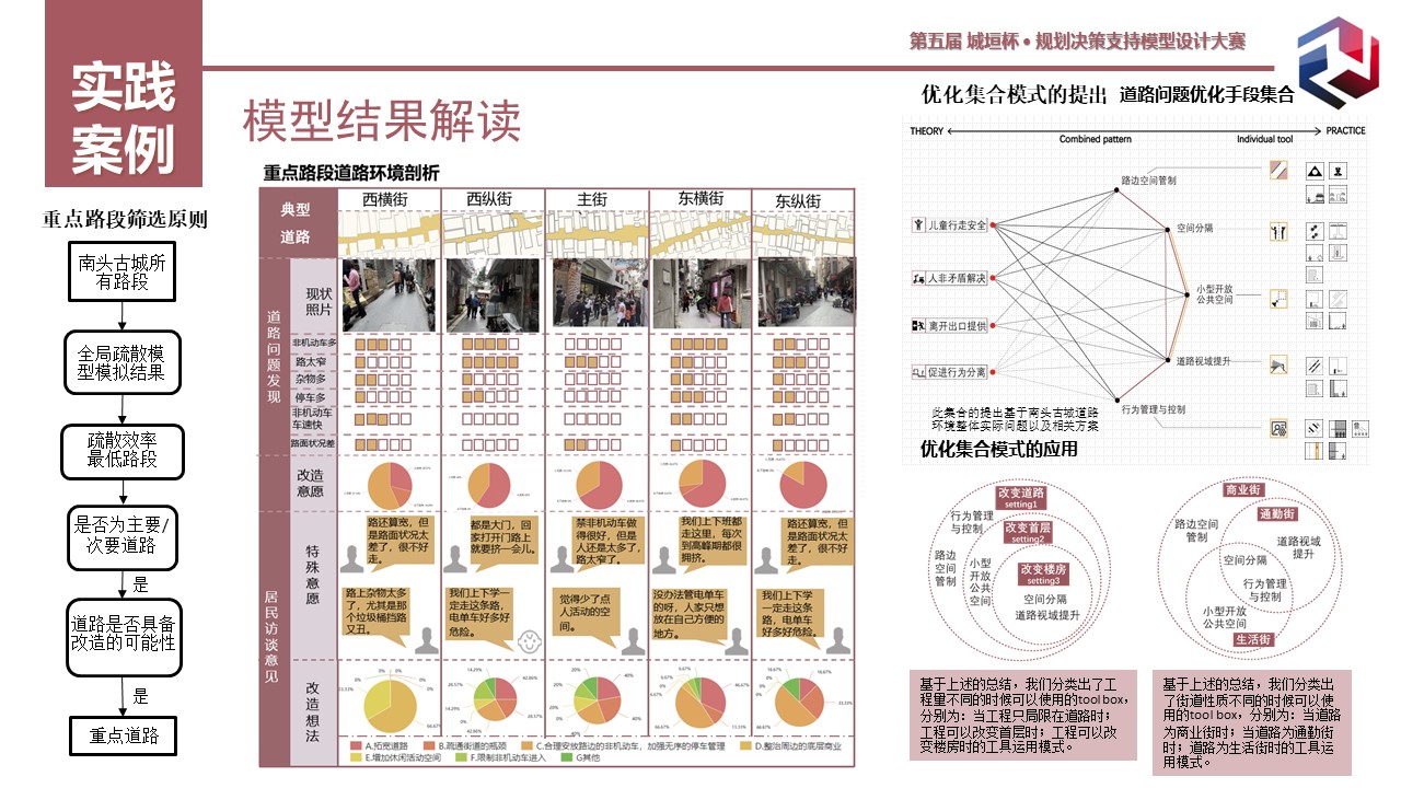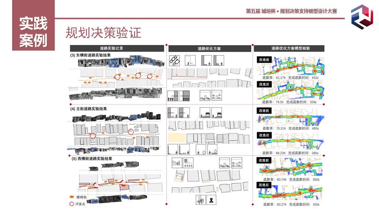 研究应⽤创新:⽬前较少基于城市规划⻆度的疏散能⼒评价和规划⽅法研究。本研究将实验模拟与规划决策有效结合,根据问题类型归纳总结整理出对应的决策,形成⼀套toolbox。