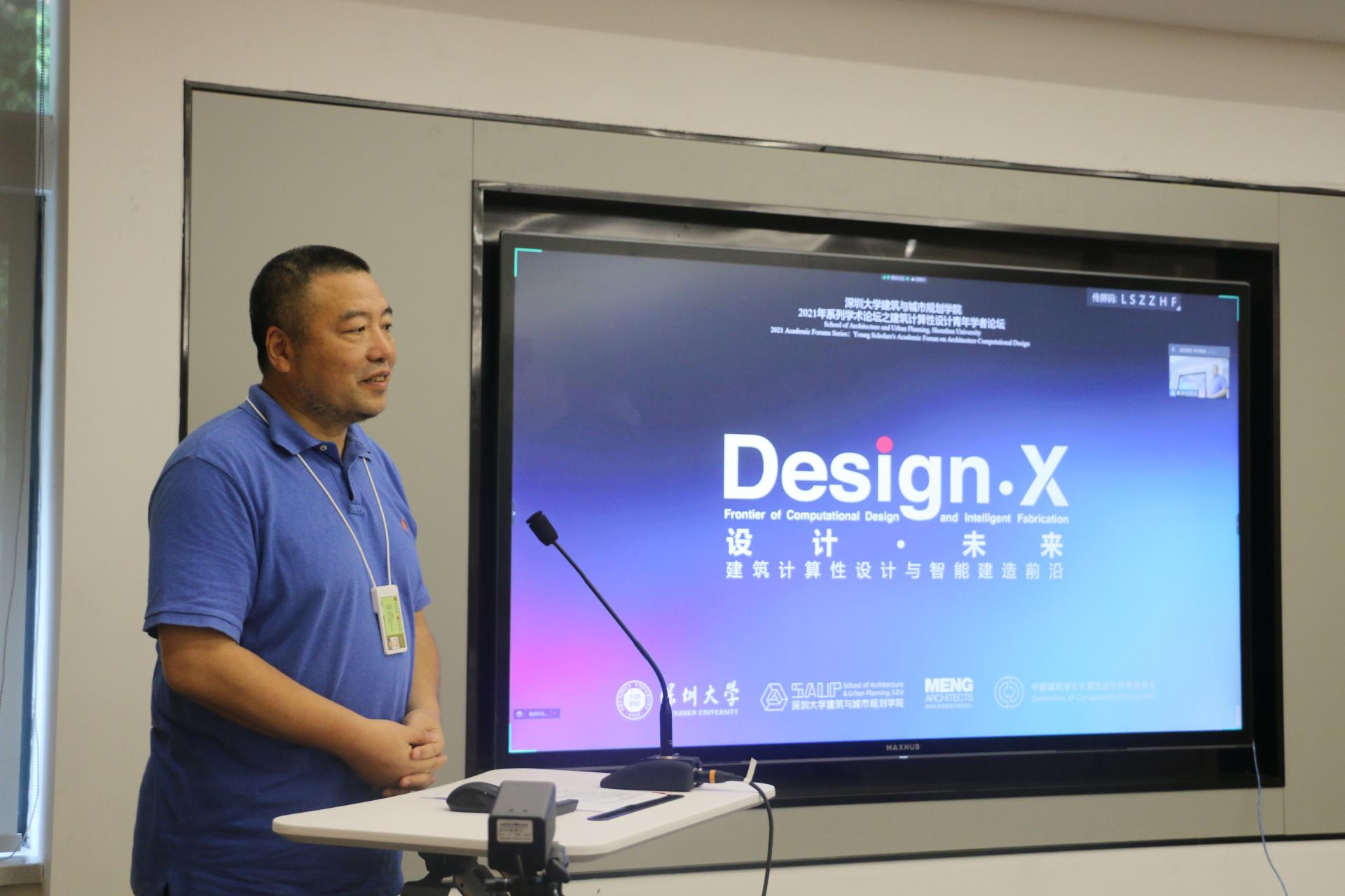 深圳大学本原设计研究中心王晓东执行主任介绍了中心是由中国工程院院士孟建民教授予2017年筹建的,是孟建民院士建筑理论、建筑技术研究与教学的重要平台。他希望本原中心未来可以成为一个开放性的学术平台,欢迎各位学者来此交流讨论,并希望此次论坛大家可以畅谈“Design X”中的“X”——未知、无限及未来。