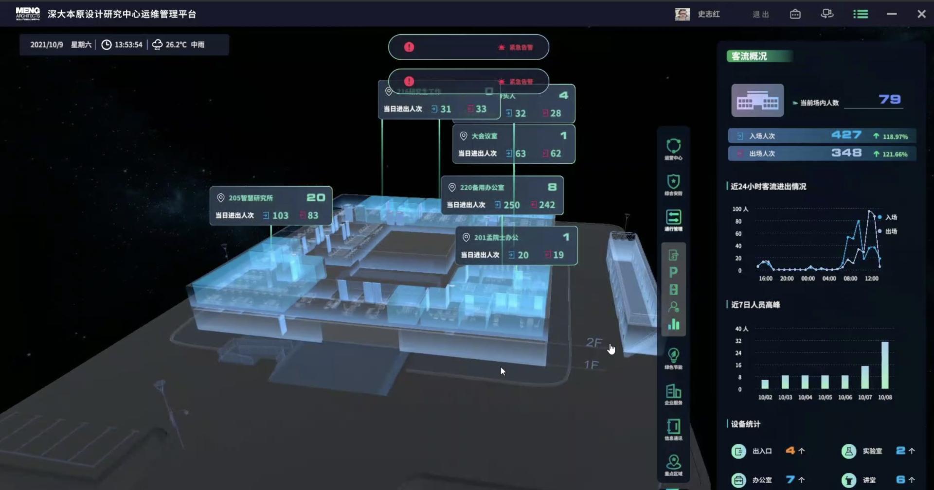 讲者专注于智慧城市与建筑领域的研究,将物联网、大数据、人工智能等新型技术与建筑信息化融合,开展多项省部级专题研究。通过论述系统的理论框架,介绍了大量的建筑数字化建设全过程实践案例,其中详细讲述了深圳市大鹏新区人民医院从方案设计到施工图设计阶段优化,沟通,决策全过程的展示。最后结合本原设计研究中心的案例,介绍了BIM如何实现数字孪生和智能运维,并现场远程进行了实际操控,让现场观众实时感受到建筑数字化所带来的便利。