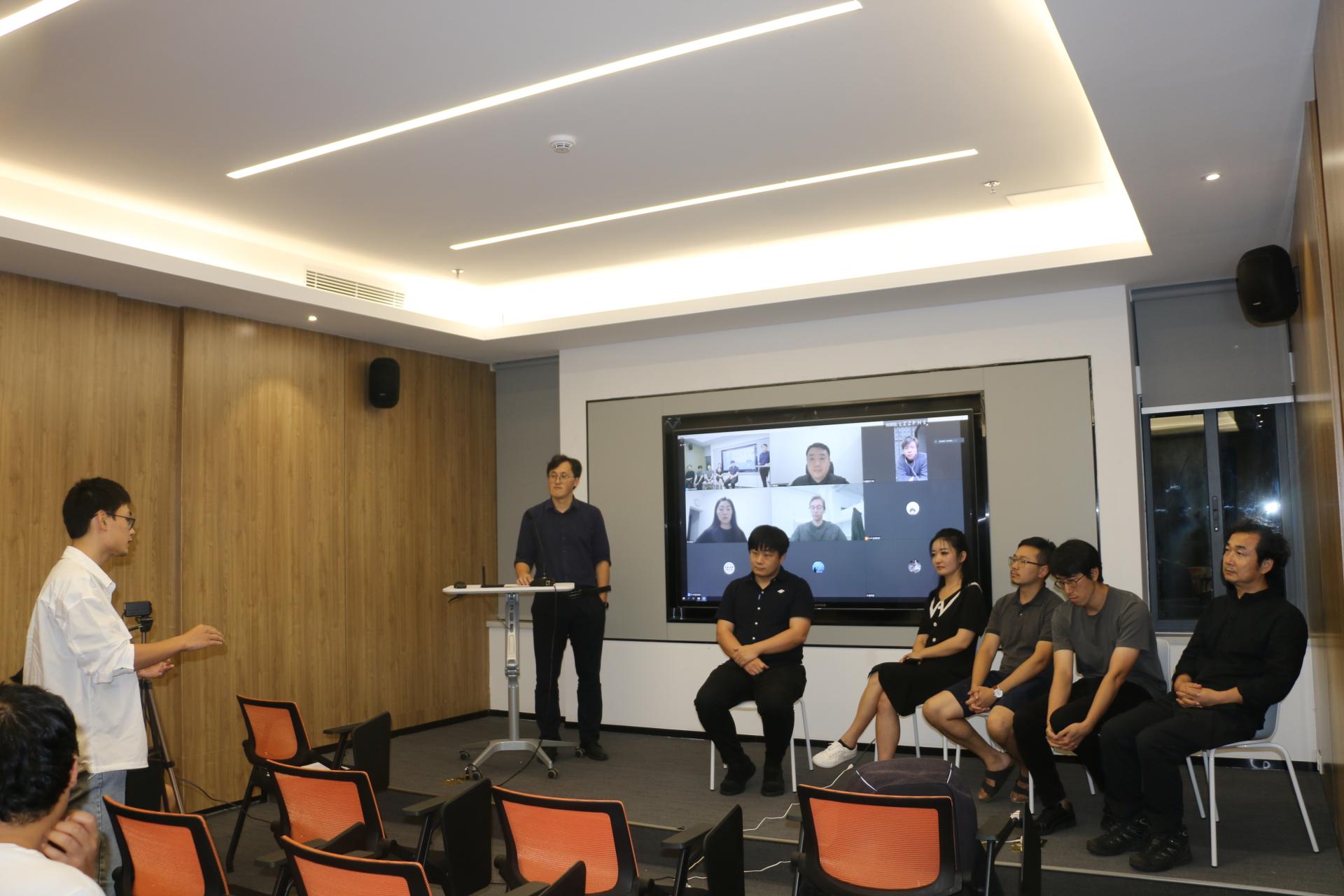 会议最后阶段,王祥、闫超、简伟文、北京建筑设计研究院大湾区分院陈晓唐总、张彤彤(深圳大学助理教授),以及线上的Michele Demarchi、韩昀松、孙明宇、鲍鼎文参加了对谈环节,学者们分享了对计算性设计与智能建造的研究、教学以及实践的个人思考与间接,并与学生进行了互动,讨论涉及“研学产”的未来模式、路径以及解决方案,进一步回应了论坛主题中的“X”因素。