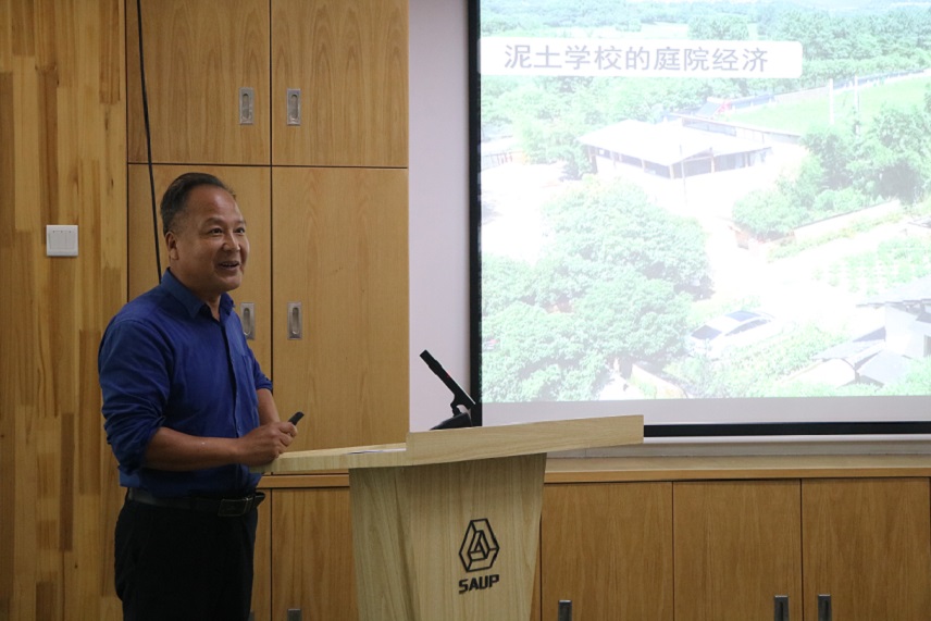 讲者以其在乡村生活的切身体会出发,分享如何从泥土建造和泥土种植的生活模式实现可持续发展,以自给自足抵御全球化对乡村生态的破坏。泥土的建造技术从木结构拆除之后重新组装,探讨墙体砌筑改造的研究,从建造到改造,边生活边建设的模式下提升夯土技术。庭院经济以农作物种植、保存、手工加工、建材加工为主,之后推出了体验经济、健康经济,实现乡村自给自足。