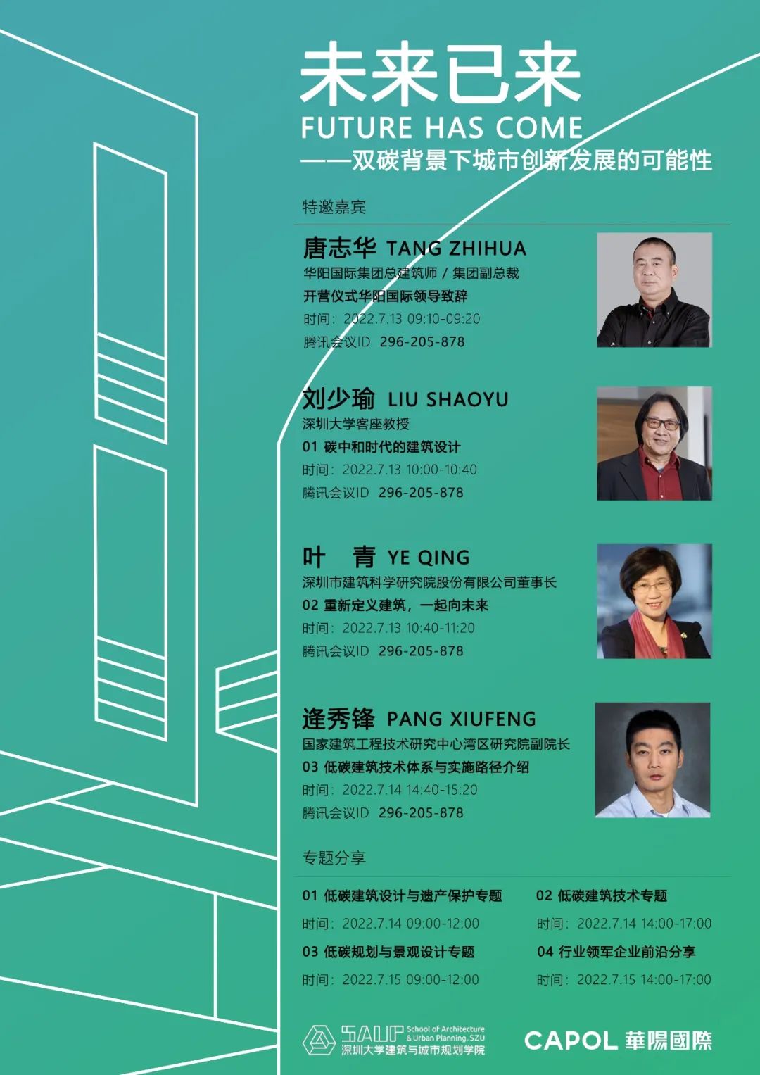 本次活动采用全线上举办的形式,围绕“双碳背景下的未来城市”,展开一场激烈的思想碰撞。以研究为导向,邀请学术界及行业大咖进行学术专题讲座,学员跨专业分组讨论,并进行终期个人汇报,特邀专家进行点评指导。以全新形式,促进学生对未来城市的可能性进行全方位思考。