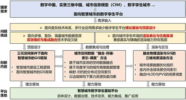“智慧城市数字孪生平台关键技术及应用”项目面向城市立体化、精细化管理需求,以建设智慧城市数字孪生平台为目标,系统开展多维、复杂、海量的城市级三维数据的高效组织、动态调度、实时分析计算、高并发访问、高逼真渲染等关键技术研发。