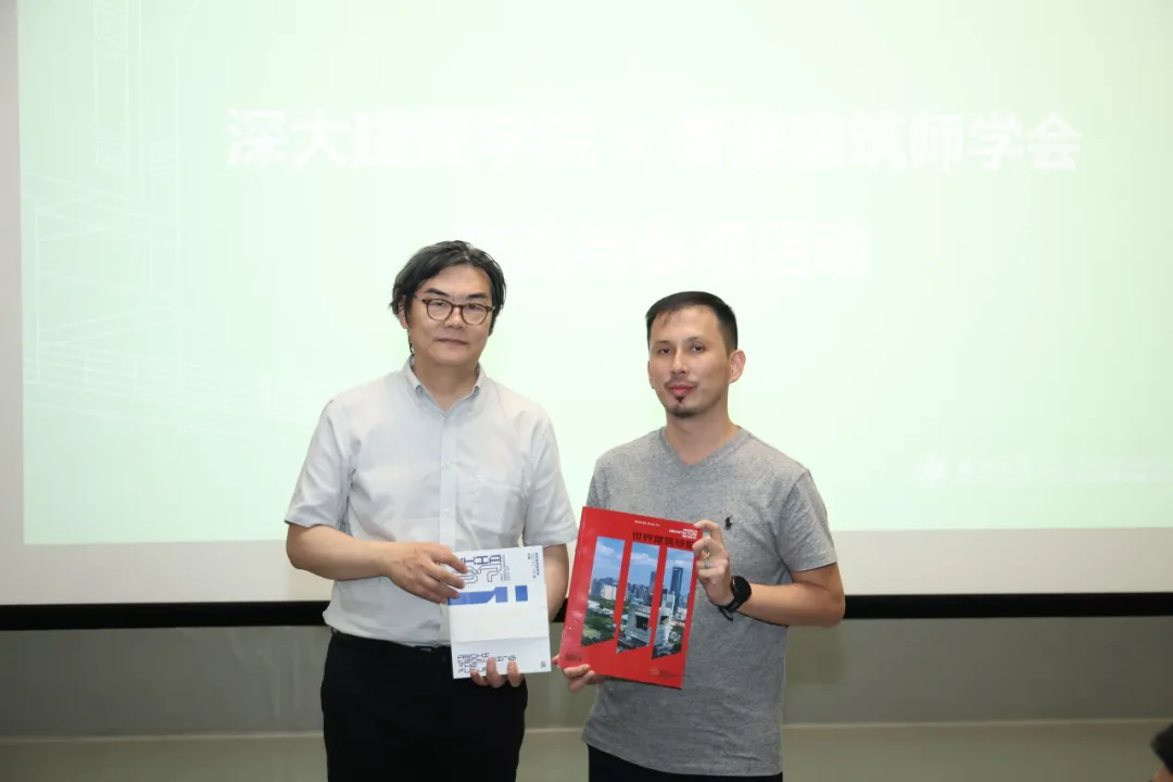 在自由研讨环节,深圳大学建筑与城市规划学院的访问教授刘少瑜教授担任主持工作。刘少瑜教授指出,随着科技的不断进步和时代的快速发展,粤港澳大湾区内的教育和实践交流变得日益重要。他强调,建筑教育不仅要紧跟科技发展的步伐,更要敏锐地捕捉时代变迁带来的新机遇和挑战。刘教授提到,大湾区作为充满活力和创新精神的地区,为建筑行业的教育和实践提供了广阔的舞台和无限的可能。在交流环节的最后,双方互赠书籍并合影留念。