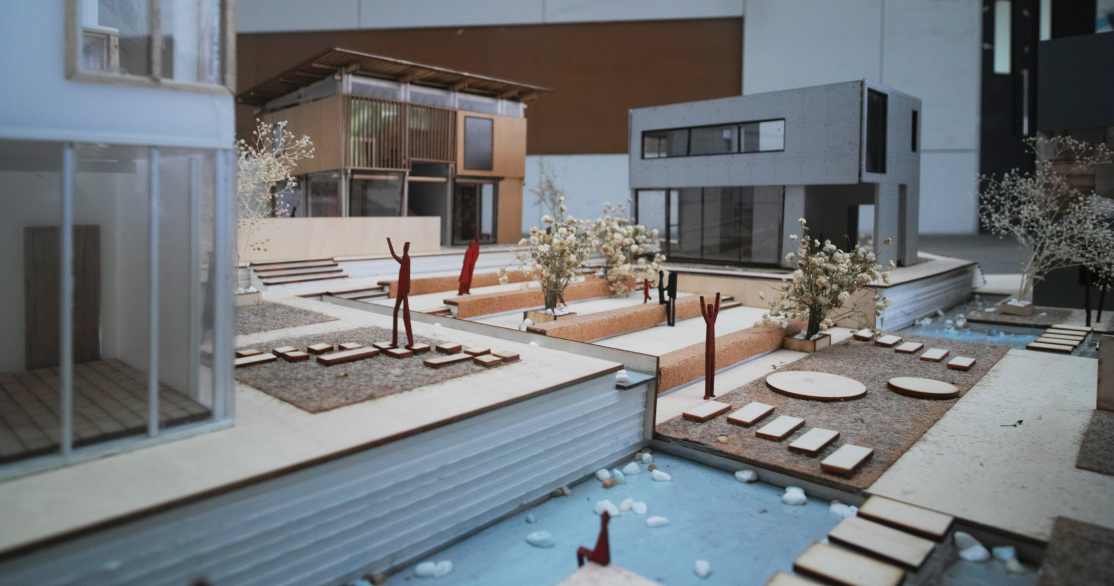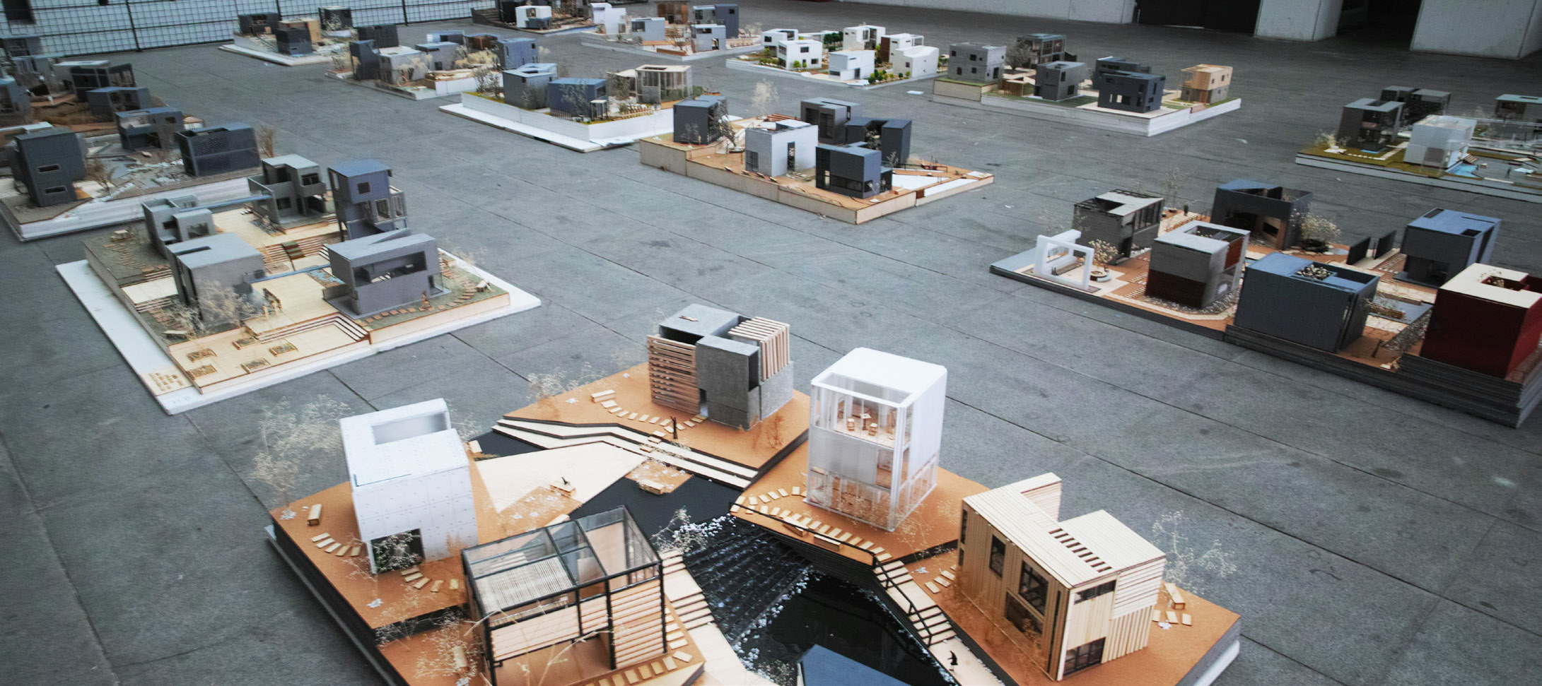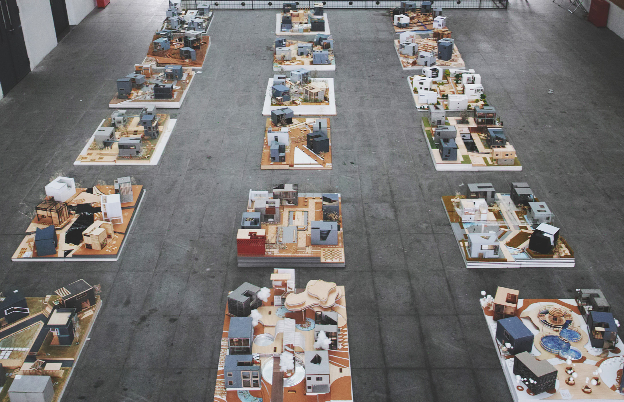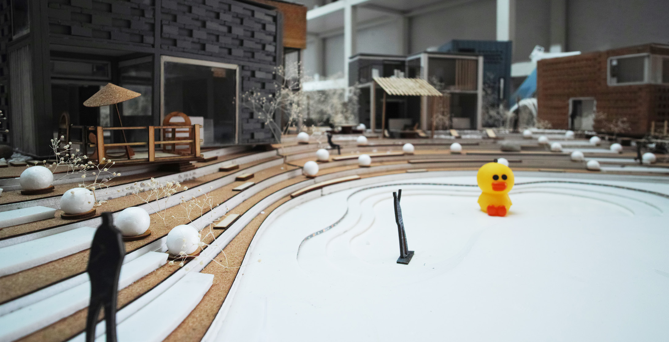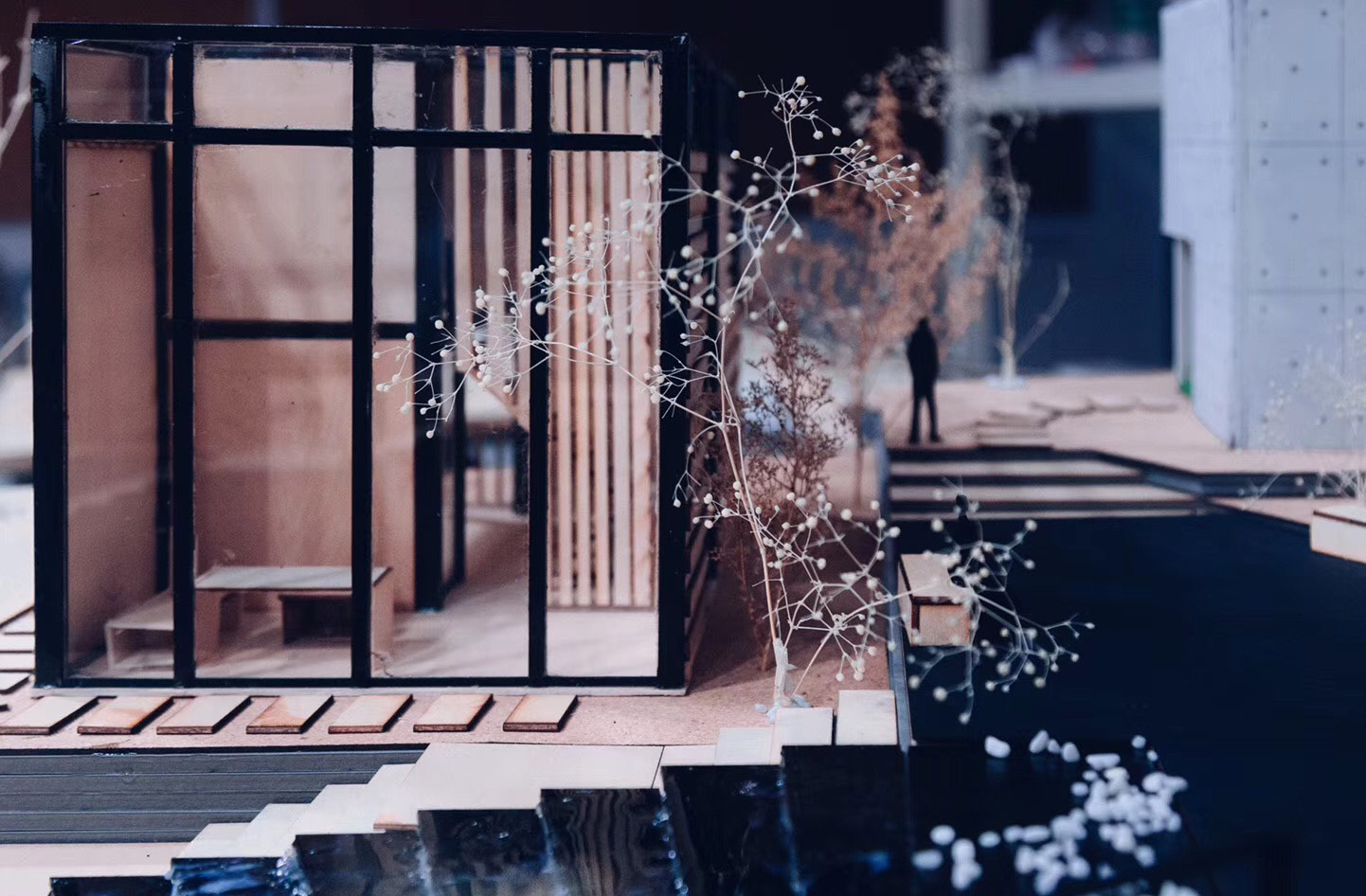 “场地组合”则需要5-6名同学进行协作,在单体模型的基础上共同创作场地,并对景观和环境设计形成初步的认识。学生既要通过协调来分配给定的场地要素(如水体、广场等),又要相对独立地完成各自建筑周边的外部空间设计。场地协调机制的介入拓宽了空间与建构训练的维度,并促进了建筑、规划、景观各专业的融合。
