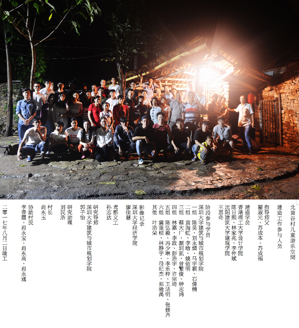 2017年8月1日晚上,在世外桃源般的北黄谷村,新建造起的儿童休息互动空间亮起了暖黄的灯,预示着两周的建造工作进入最后的尾声。