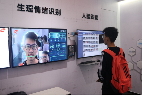 最有趣的环节是工作人员邀请同学们在现场体验了人工智能产品设备:人脸大数据系统与生理与情绪识别产品。人脸大数据系统:力维通过引入并优化大数据技术对人脸数据的处理机制,将系统对海量人脸数据的搜索能力提升到亿级数据秒级检索的量级,可以帮助公安进行人脸采集、实时布控、轨迹分析等,从而快速侦破案件、定位抓捕嫌疑人等。而心理与情绪识别产品,则结合时下领先的视频、机器视觉与深度学习技术,通过摄像头准确检测出人员的生理指标、微表情、微动作,并通过力维专业的专家智能评判系统对采集分析的图谱进行分析,进而判断出被审讯人情绪异常状况,据了解,这些产品主要应用在公安领域。
