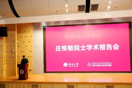 报告会开始前,庄院士在科技楼贵宾厅会晤了李清泉校长、郭仁忠院士以及建筑与城市规划学院的领导班子成员。下午4点30分,学术报告会正式开始。主持人范悦教授对庄惟敏院士莅临深圳大学表示欢迎,并简要介绍了庄院士在建筑策划学研究、建筑创作和建筑教育领域取得的突出成就。