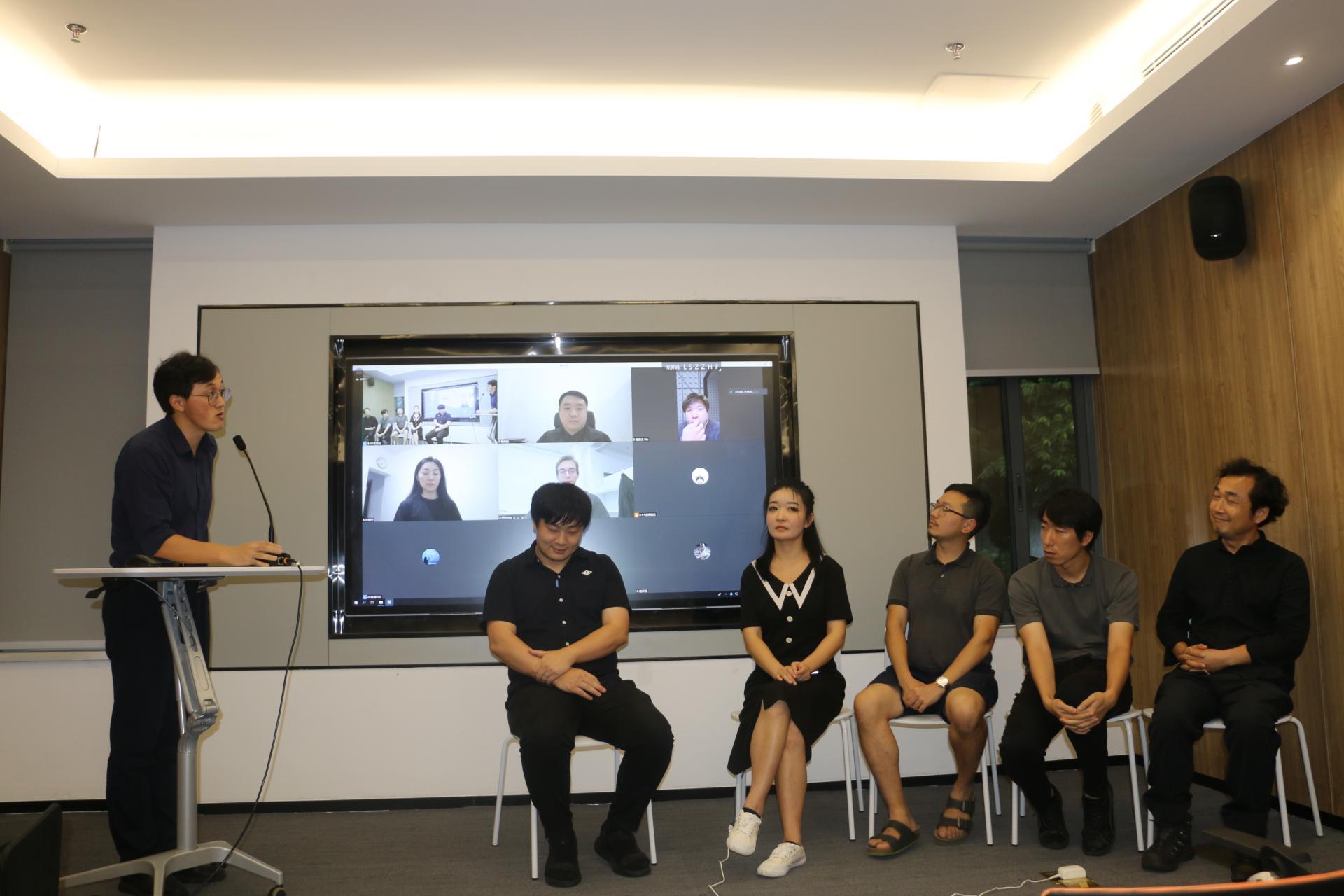 会议最后阶段,王祥、闫超、简伟文、北京建筑设计研究院大湾区分院陈晓唐总、张彤彤(深圳大学助理教授),以及线上的Michele Demarchi、韩昀松、孙明宇、鲍鼎文参加了对谈环节,学者们分享了对计算性设计与智能建造的研究、教学以及实践的个人思考与间接,并与学生进行了互动,讨论涉及“研学产”的未来模式、路径以及解决方案,进一步回应了论坛主题中的“X”因素。