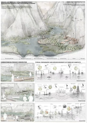 本次奖学金由符合报名条件的学生自愿参与,经遴选确定12人进入参评名单。获奖作品从生态环境、经济-社会资本、能源-产业转型等方面提出兼具创新性与可行性的景观设计方案。