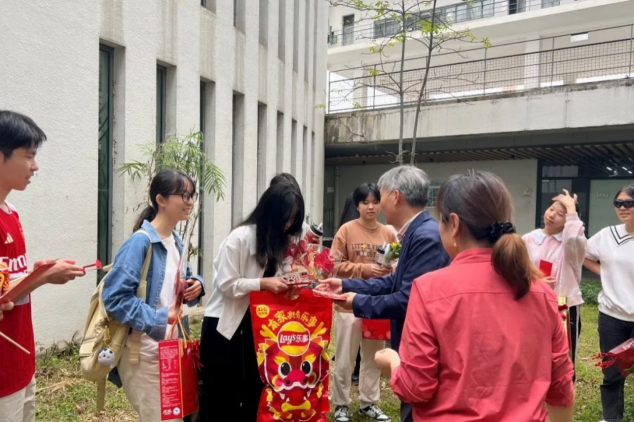 抽奖过后,大家开始挑选自己的新春大礼包啦。党委书记钟波涛也为留校学生发放龙年红包。学院师生左手拿礼物右手拿红包,大家满载而归,每个人脸上都洋溢着笑容。