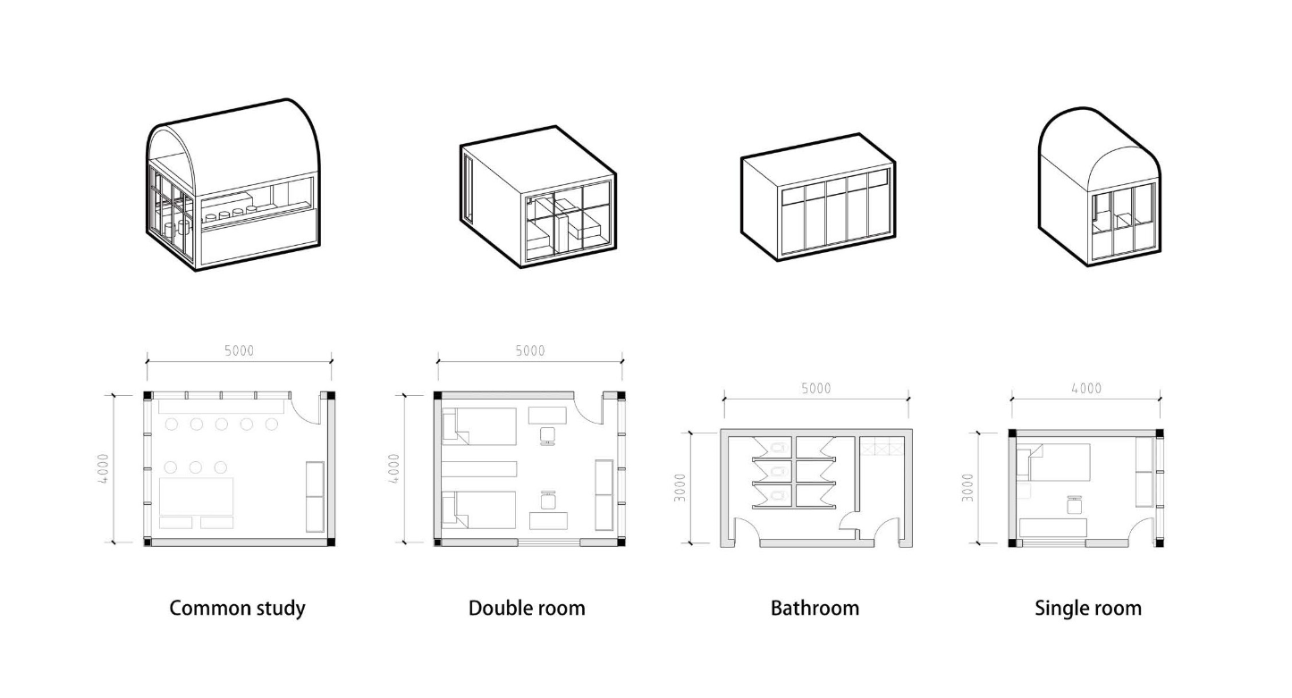提案旨在为150-200个13-18岁的无家可归学生提供住宿设施,同时满足其学习生活中所必须的生活空间、成长空间和互动空间。住宿方案需要灵活满足不同学生的喜好,同时兼具易于建造的特性,并在教育规则约束和放松之间取得平衡。
